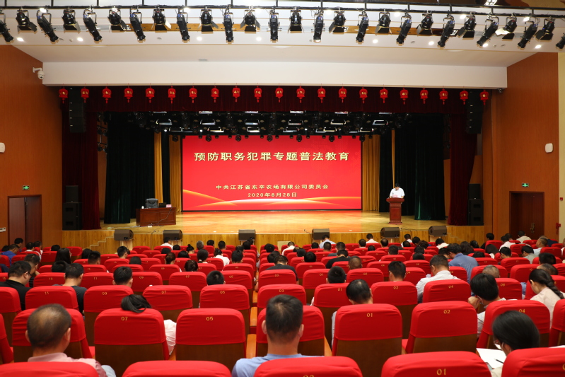 | ? ? 為貫徹落實省委“三項機制”文件精神和省國資委黨委全面從嚴治黨工作要求,進一步推進法治農場、廉潔農場建設,切實增強農場全員法治意識。根據《江蘇省東辛農場有限公司預防職務犯罪專題普法教育活動方案》相關要求,8月28日上午,東辛在職工文化活動中心舉辦普法專題教育活動。場領導、農場公司和農發東辛分公司機關全體工作人員、農場社區、農發東辛分公司生產區領導班子、二三產單位領導班子,各單位營銷類、采購類、技術類、經濟類等重要敏感崗位人員參加活動。活動由農場公司副總經理徐中兵主持。