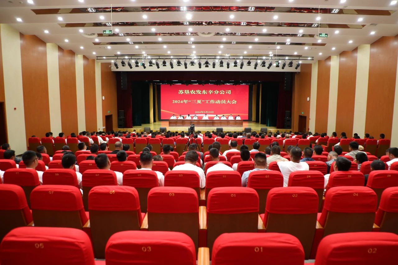 農(nóng)場公司黨委委員、蘇墾農(nóng)發(fā)東辛分公司常務(wù)副總經(jīng)理陳躍武作了題為《錨定目標(biāo) 凝心聚力 實干爭先 奮力奪取2024年“三夏”工作全勝》的動員報告,全面分析今年“三夏”面臨的形勢,科學(xué)嚴(yán)謹(jǐn)部署“三夏”工作,動員全場上下認(rèn)清形勢、提高認(rèn)識,圍繞目標(biāo)、強化執(zhí)行,以實干擔(dān)當(dāng)?shù)木瘛⒐钥穗y的勇氣,扎實做好各環(huán)節(jié)工作,奮力奪取“三夏” 全勝,為夏糧豐收、秋熟增效奠定堅實基礎(chǔ)。