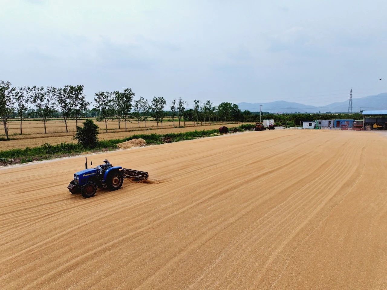 ? ? ? ? 夏日的陽(yáng)光照耀著東辛大地,一望無(wú)際的麥穗在微風(fēng)中輕輕搖曳,金黃色的麥浪翻滾著豐收的喜悅。隨著氣溫逐漸升高,夏收工作也進(jìn)入白熱化階段,場(chǎng)面晾曬成為夏收期間最忙碌的事情之一。