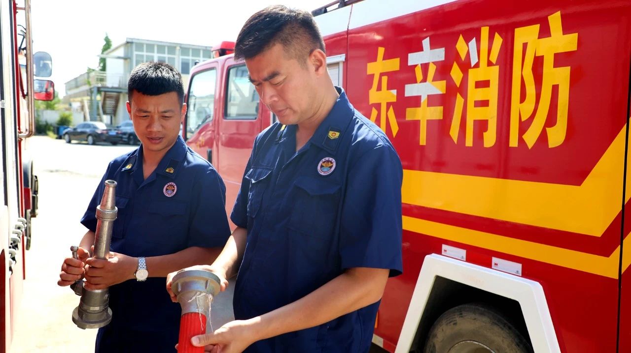 “東辛農場作為消防巡查重點單位,‘三夏’又是一年中消防安全形勢最嚴峻、出警率最高的時候,必須時刻繃緊安全這根弦,不能麻痹大意,不能抱有任何僥幸心理。”東辛消防隊隊長趙志軍說。為了做好“三夏”期間消防安全工作,東辛消防隊24小時輪班值勤,做到時時有人在,事事有人應,每天定時檢查消防車輛、救援器材和個人防護裝備,消防車“荷槍實彈”時刻保持滿水滿油狀態,確保能夠隨時應對突發情況。同時,除了火警119電話轉接這一主要接警方式外,額外設立專屬內部固定電話,一旦發生火情,東辛消防隊將以最快速度穿戴戰斗服,奔赴火場一線。夏收期間,東辛消防隊深入田間地頭,多次展開巡查,積極與相關部門協調配合,確保每一項護航措施都能貼近實際,落到實處。消防隊通過現場講解、派發宣傳資料等形式,對農機駕駛員進行安全科普,配合駕駛員排查潛在安全隱患,防止因設備故障、安全意識淡薄原因發生火災事故。同時,消防隊還向工作人員傳授安全收割的知識與技巧,提醒他們在忙碌的收割過程中不忘防火安全,避免火源與易燃物接觸,確保每一粒糧食都能安全歸倉。隨著夏種和夏管階段的到來,東辛消防隊不斷加大巡查、宣傳力度,護航工作也進入新的階段。
