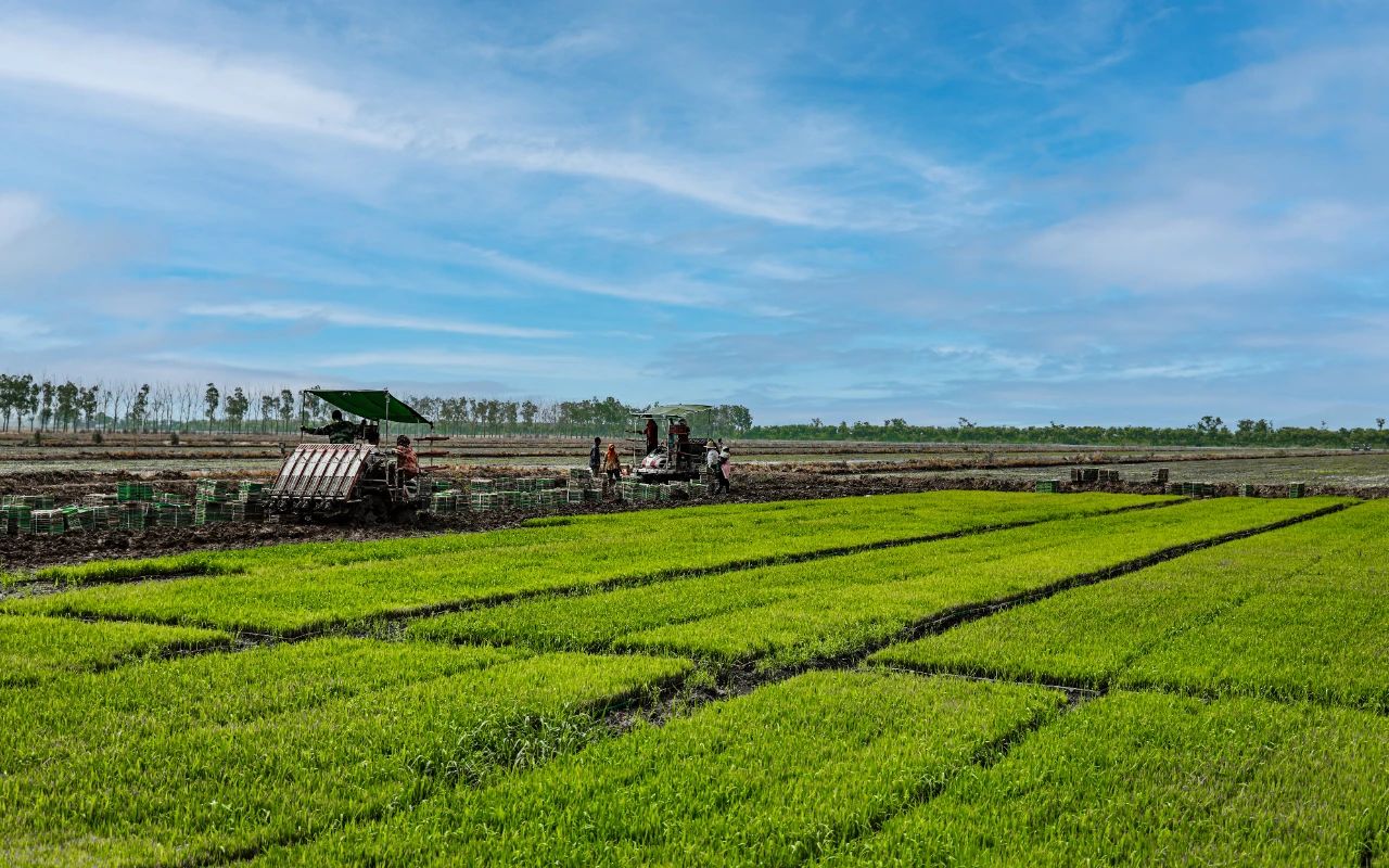 眼下,蘇墾農發東辛分公司進入水稻插秧季,預裝了北斗衛星定位導航系統的插秧機,正按照設定的路線在田間穿梭,栽下一行行整齊的秧苗,科技進步讓東辛“三夏”生產再次提質增速。