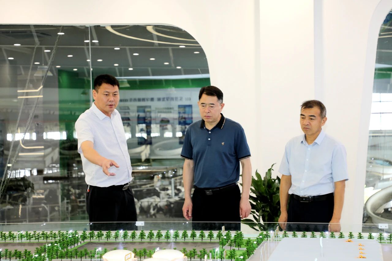 胡傳宏一行先后參觀了蘇墾農發連云港農機社會化服務應急保障中心、供應貿易部、蘇墾優然牧業公司等地,現場聽取相關負責人介紹,詳細了解東辛經濟產業發展情況。在農機社會化服務應急保障中心,映入眼簾的是幾十臺擺放整齊的大型收割機凱斯4099和約翰迪爾C2400,胡傳宏對東辛農業機械化水平和農業裝備水平連連稱贊。在蘇墾優然牧業公司展廳,在了解到牧場高效利用養殖糞污生產有機肥,實施的連云港市首個沼氣發電項目成功并網發電后,胡傳宏一行對東辛生態牧場循環養殖模式給予充分肯定。