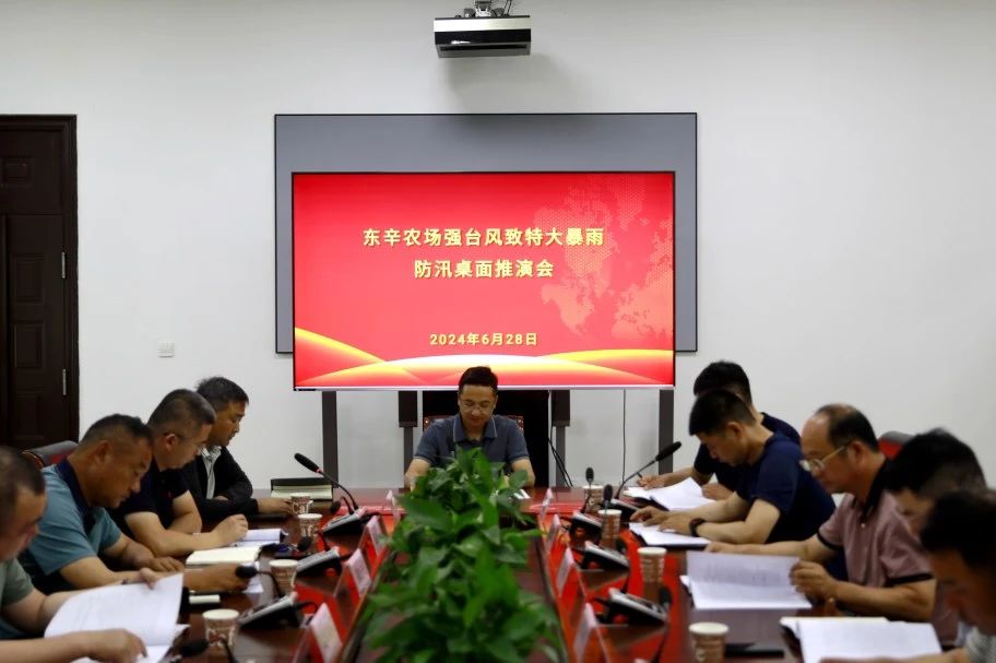 東辛防汛抗旱指揮部辦公室(安全環保管理部),農場社區,蘇墾農發東辛分公司農業中心、項目管理辦公室,農場公司產業發展部、東陬生產區、建安公司、凱惠電力公司、農牧中心、水產公司、蘇墾優然牧業公司、惠豐生物肥料公司、東旺奶牛公司、供應貿易部、冷鏈物流公司、東農物業公司等部門和單位相關負責同志參加。