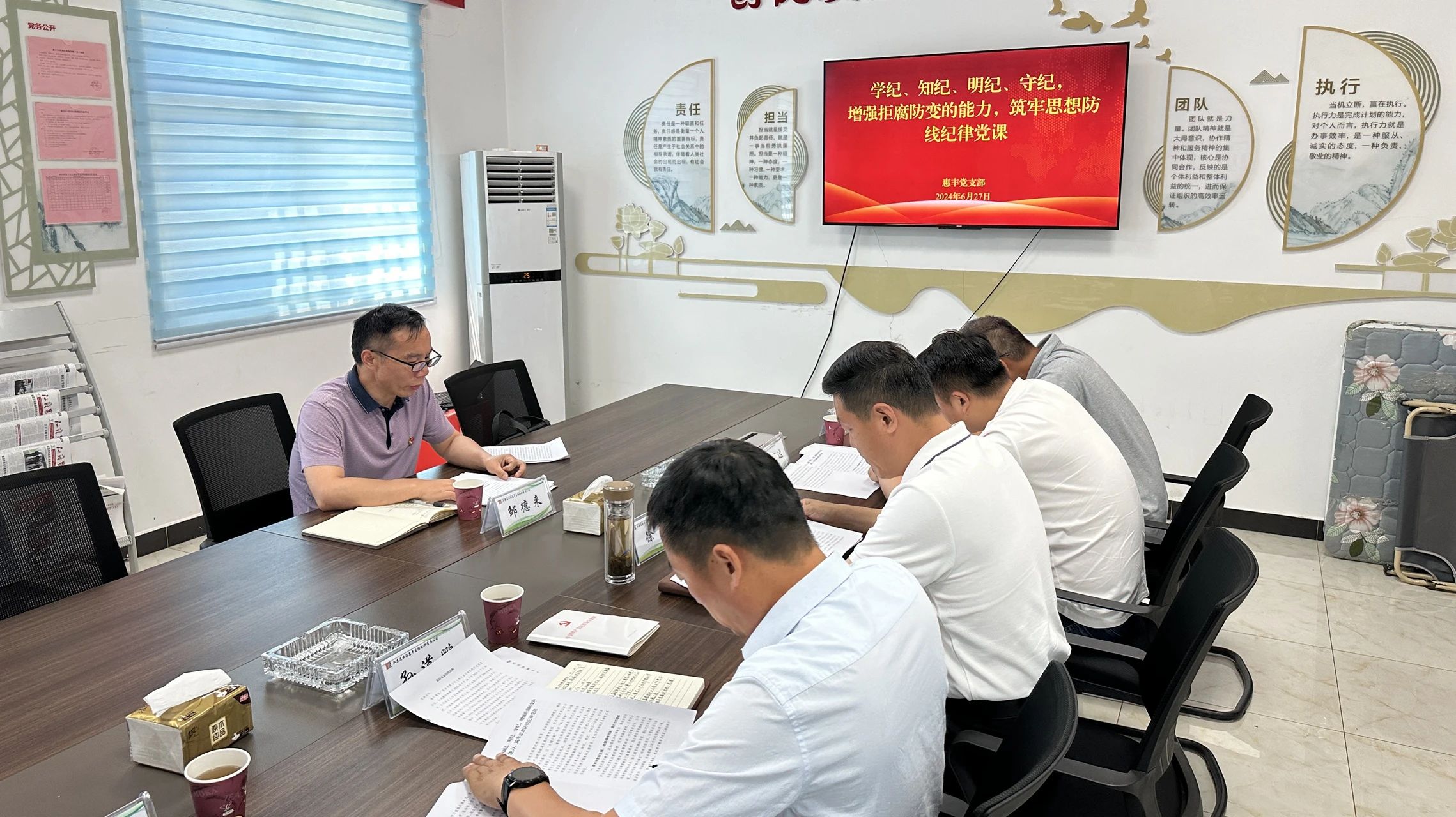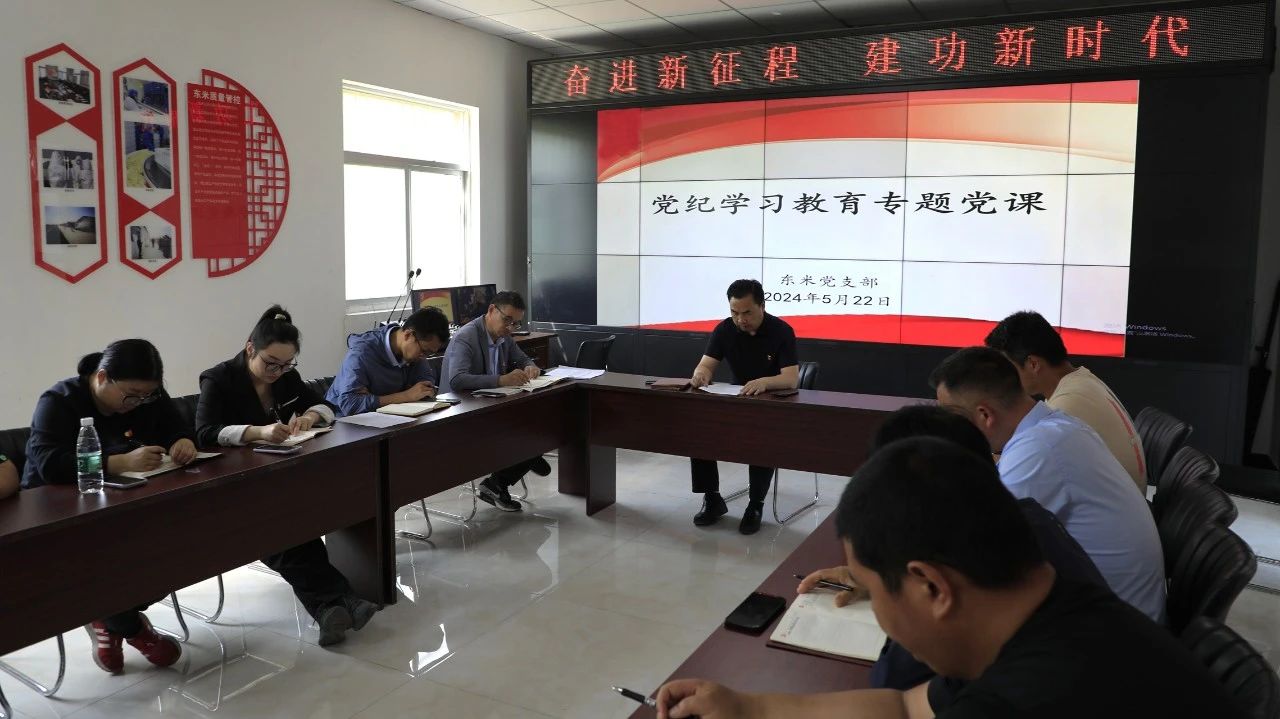 農場公司總畜牧獸醫師、東米公司直屬黨支部書記、董事長王寬波以《推進黨紀學習教育走深走實》為題,為東米公司直屬黨支部全體黨員講專題黨課。黨課圍繞統一思想認識、提升黨性修養,領悟學習內容、嚴明黨紀實效,突出以學促行、增強工作作風三個方面,闡述黨紀學習教育是加強黨的紀律建設、推動全面從嚴治黨向縱深發展的重要舉措。要求黨員干部結合發展實際,把學習習近平總書記關于全面加強黨的紀律建設的重要論述和學習《條例》貫通起來,一體領悟、一體把握、一體貫徹,用黨的創新理論立場觀點方法引領紀律建設工作,做到知行統一。