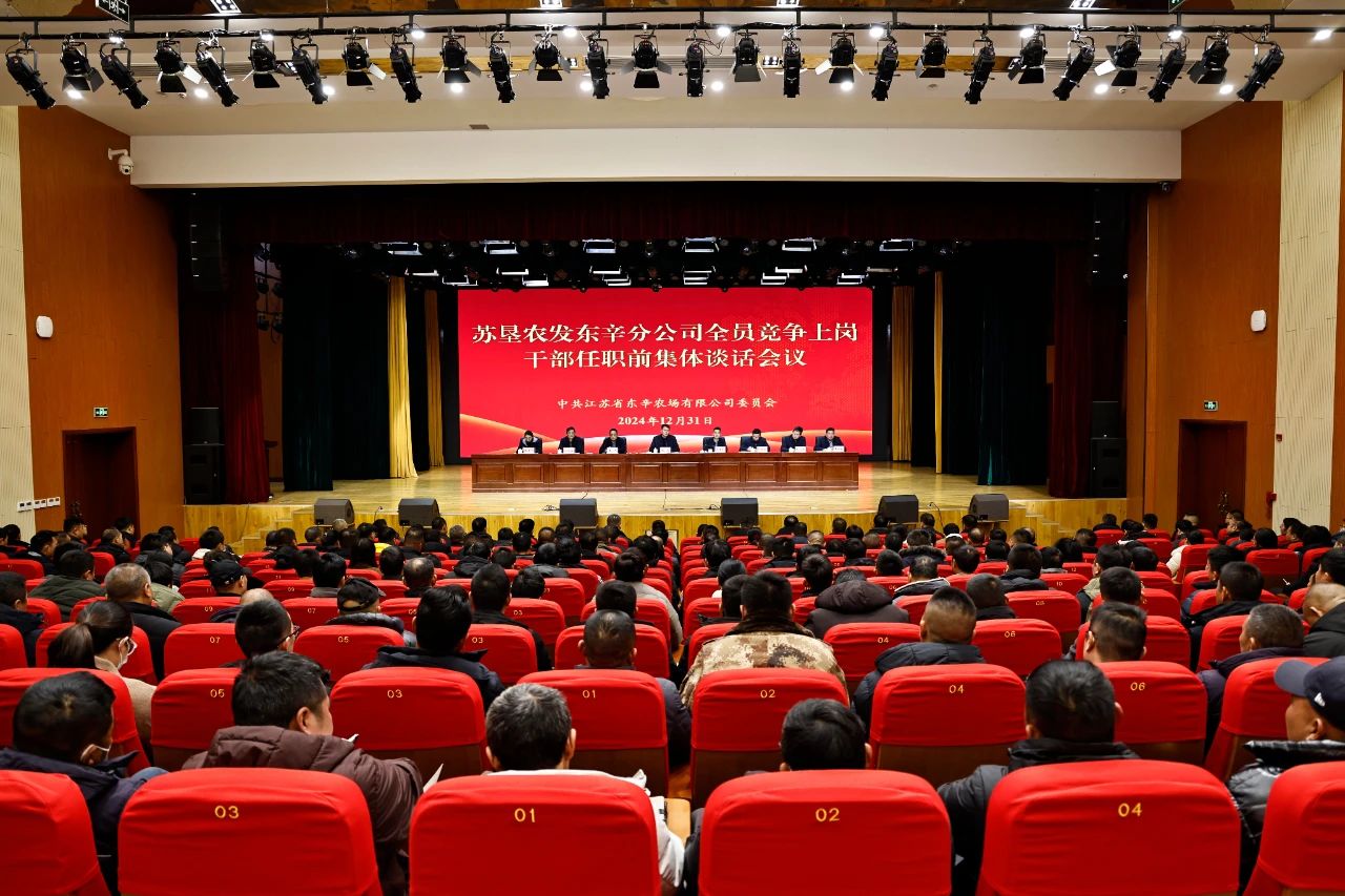 12月31日下午,蘇墾農發東辛分公司召開干部任職前集體談話會議。東辛黨委班子成員、非黨委委員分公司副總經理、蘇墾農發東辛分公司全體管理人員、黨委組織部相關人員參加會議。