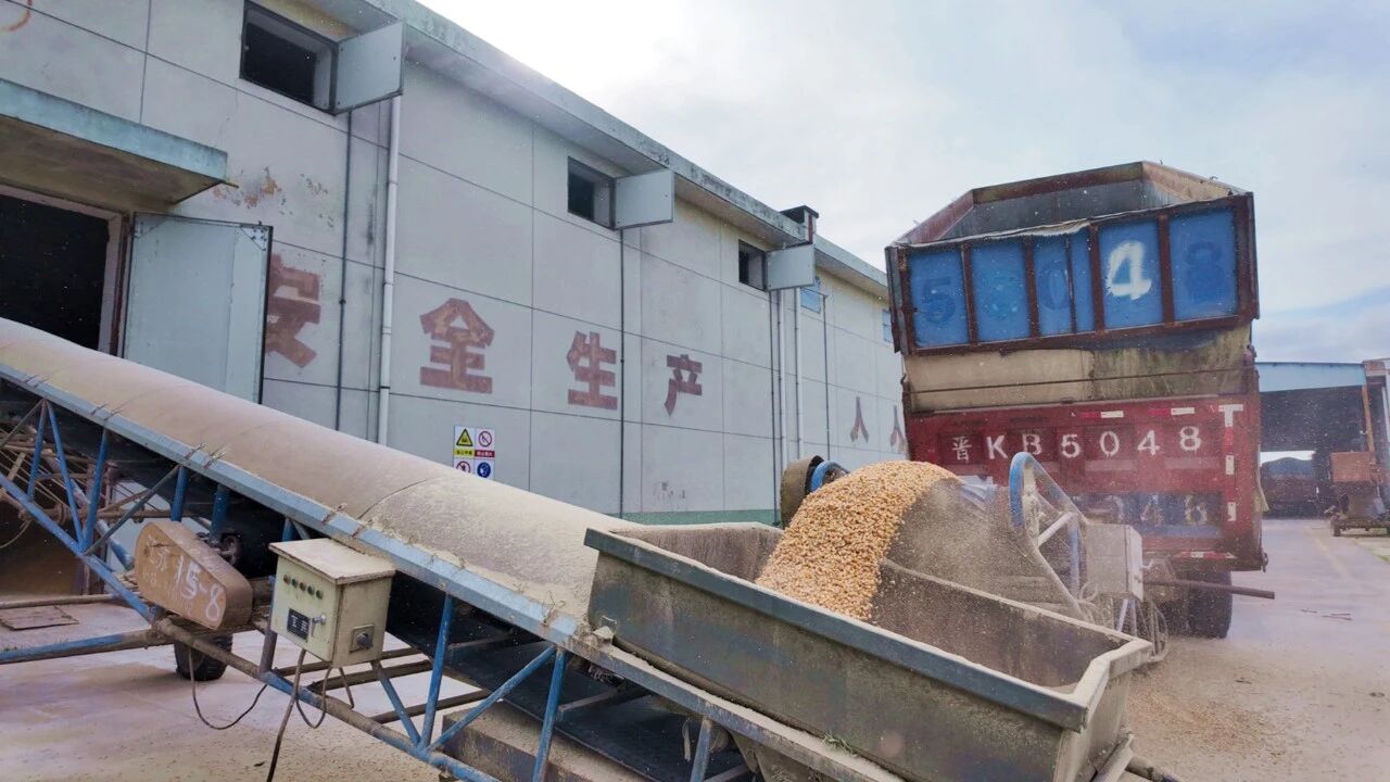 天剛破曉,供應(yīng)貿(mào)易部的大院已是一派繁忙。滿載新收玉米的運(yùn)糧車在工作人員的引導(dǎo)下有序過磅稱重,司磅員記錄數(shù)據(jù)后,立即抽取樣品送往化驗(yàn)室檢測水分、雜質(zhì)等指標(biāo)。供應(yīng)貿(mào)易部經(jīng)理駱中正介紹:“今年雨水偏多,收割日期也較遲,收上來的玉米水分含量都在25%以上,堆久了容易霉變。為此我們組建晝夜兩班倒烘干隊(duì)伍,全程保障設(shè)備不停轉(zhuǎn)、烘干不中斷,以‘歇人不歇機(jī)’的方式全力守住秋糧品質(zhì)。”