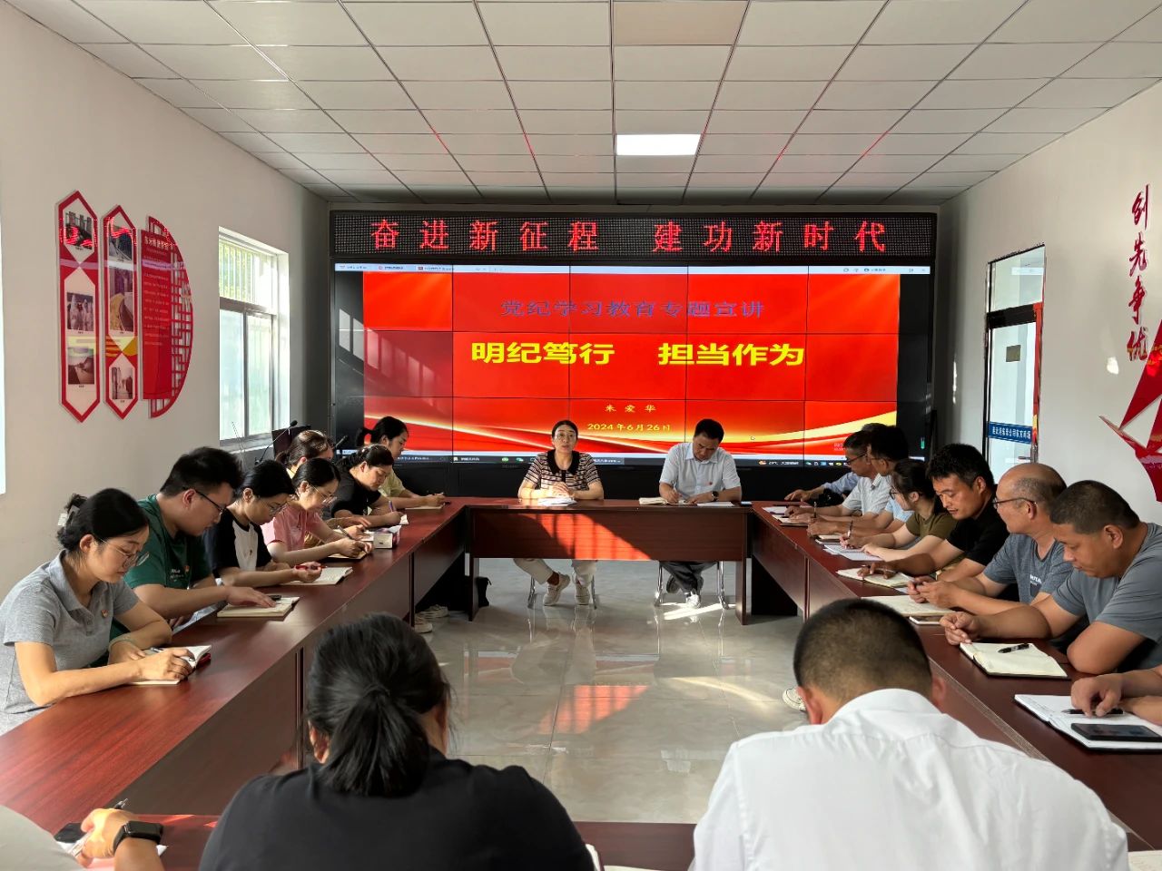 黨委副書記、農場公司總經理、社區管理委員會主任趙士利《堅持黨性黨風黨紀一起抓》為題,到建安公司直屬黨支部專題黨課。黨課從堅持黨性黨風黨紀一起抓、嚴守黨的廉潔紀律、嚴守黨的工作紀律三個方面,深刻闡述開展黨紀學習教育的重要性和必要性,強調黨性是根本、黨風是表現、黨紀是保障,用多個鮮活事例和典故,教育引導黨員干部牢固樹立紀律意識,常懷律己之心,常思貪欲之害,嚴格遵守黨的“六大紀律”,做到堅守自律,堅持創新,不斷提升工作能力和水平要求全體黨員干部深刻領悟、深入學習新修訂的《中國共產黨紀律處分條例》,把學習黨紀的過程轉化為增強紀律意識、提高黨性修養、推動建安公司各項工作有序開展的動力,為東辛經濟社會發展貢獻建安力量。