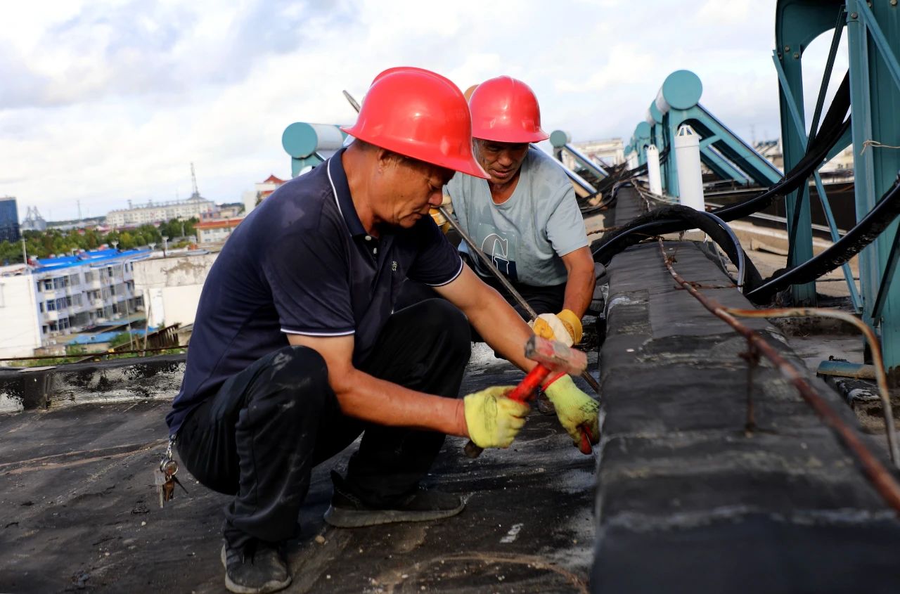 “金色家園小區(qū)是農(nóng)場早期建設(shè)的,多年的風吹雨打致使有些頂樓住戶出現(xiàn)漏雨現(xiàn)象,駱先生家的樓頂,前期我們已經(jīng)通過注漿、鋪設(shè)防水卷材等方式,開展過多次的維修工作,但沒過幾年又出現(xiàn)漏雨情況。為徹底解決這個問題,這次我們將樓頂全部清空晾干后,用水泥砂漿在房頂重新做一個坡度,方便積水流出,再用防水卷材重新鋪設(shè),保證屋頂?shù)拿芊庑裕鉀Q水流的排放問題。”薛益德說。