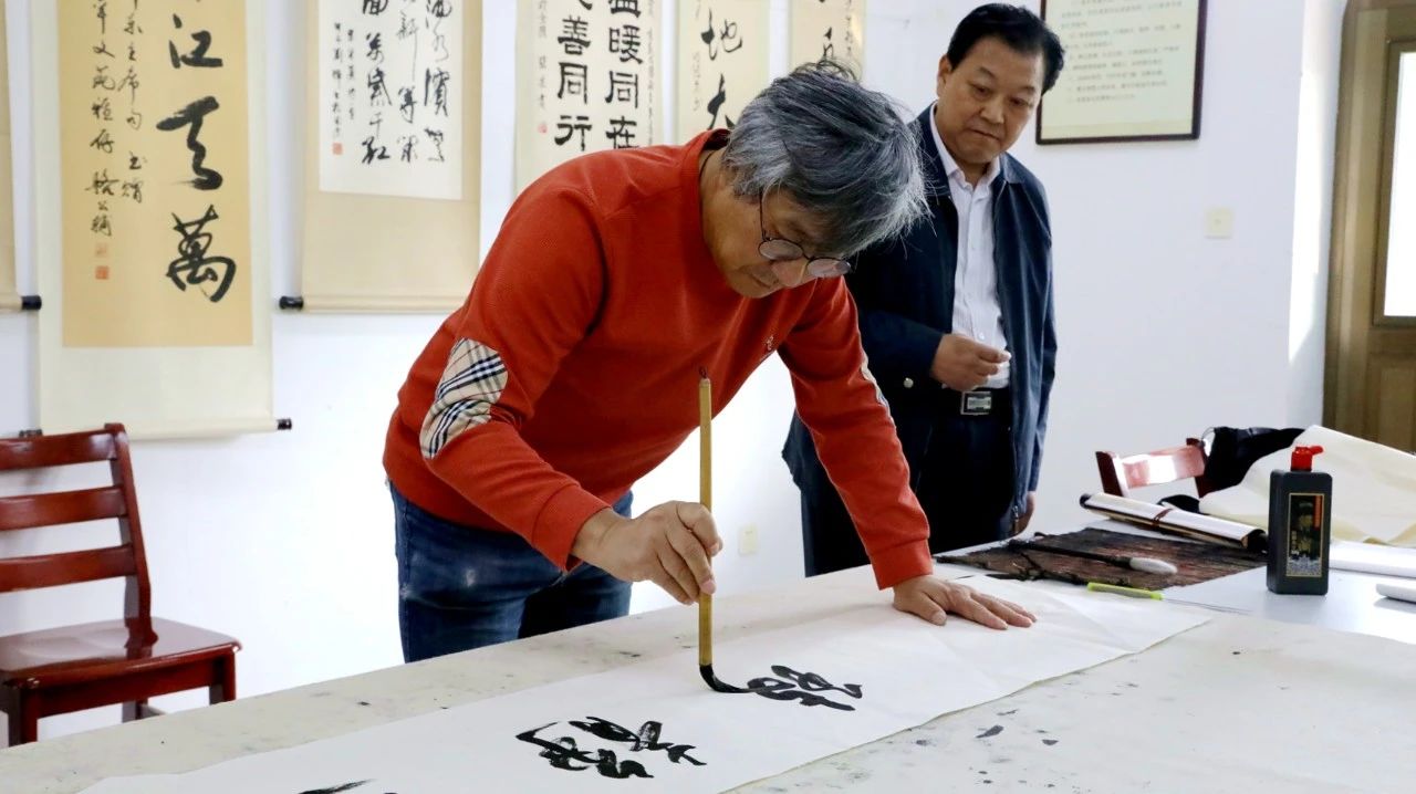 ? ? ? ?慰問結(jié)束后,東辛黨委書記、董事長(zhǎng)趙志,黨委副書記姜杰,副總經(jīng)理、工會(huì)主席朱愛華陪同文友會(huì)一行來到東辛文苑孔子學(xué)堂,雙方就農(nóng)場(chǎng)發(fā)展、職工養(yǎng)老、人文建設(shè)等內(nèi)容進(jìn)行了座談交流。座談結(jié)束后,協(xié)會(huì)人員與書法愛好者們進(jìn)行學(xué)習(xí)交流,以筆會(huì)友,以墨言情,現(xiàn)場(chǎng)書寫了一幅幅遒勁有力、氣韻生動(dòng)的書法作品。