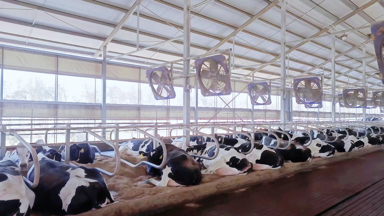 從蘇墾優然牧業公司參觀廊道俯瞰牧場,萬余頭荷斯坦奶牛在這里快樂生活,有的悠閑地躺在舒適的臥床上享受著“日光浴”,有的細細咀嚼品嘗著“營養大餐”。飼養組負責人韓文康介紹:“奶牛的臥床率和產奶量成正比,需全天候保持牛舍的干凈整潔,每天及時清理更換臥床墊料,全自動刮糞系統不間斷運行,保持舍內通風以提高奶牛舒適度,目前奶牛臥床率高達95%以上。”