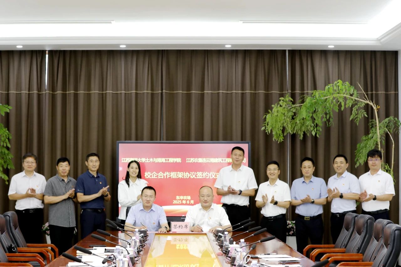 江蘇海洋大學土木與港海工程學院、東辛農場公司機關部門及江蘇農墾連云港建筑工程有限公司相關人員參加簽約儀式。