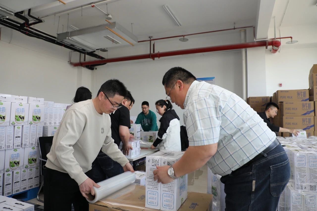 隨著抖音直播間訂單量的不斷攀升,冷鏈物流公司倉庫四周堆滿了即將打包發(fā)貨的“簡蘇”牛奶。十余名工作人員各司其職,膠帶封箱的“嘶嘶”聲、貨物搬運(yùn)的指令聲、團(tuán)隊(duì)協(xié)作的加油聲此起彼伏,奏響了一曲動人的勞動交響樂。質(zhì)檢員魏姐手持清單,嚴(yán)謹(jǐn)核對每一單信息:“百分百準(zhǔn)確率是我們的底線,這既是對‘簡蘇’品牌負(fù)責(zé),更是對消費(fèi)者負(fù)責(zé)。”她一邊核驗(yàn)一邊強(qiáng)調(diào)。