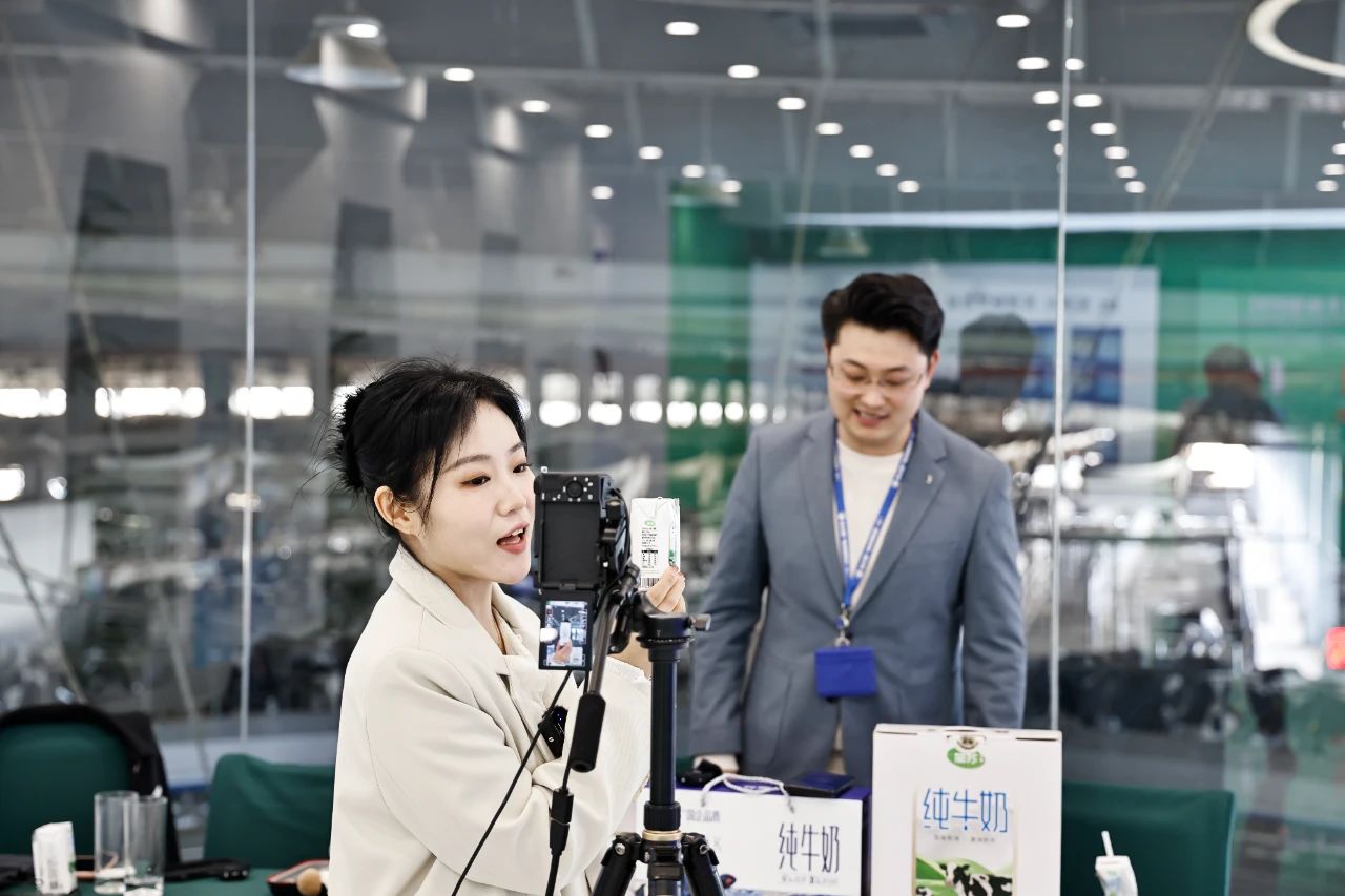 在直播中,透過全景玻璃幕墻,只見奶牛排隊走上轉盤式擠奶機,擠奶過程清晰地展現(xiàn)在大家眼前。生鮮乳通過管道直接流入儲奶罐,全程自動化、衛(wèi)生且高效。最新升級的含有4.0g/100ml蛋白質、130mg/100ml原生高鈣的“簡蘇”常溫純牛奶更是引發(fā)了觀眾們的熱烈討論,“原來好牛奶是這樣生產(chǎn)出來的!”“親眼看到才覺得放心!”等彈幕不斷涌現(xiàn)。通過場景化溯源直播,大家對“簡蘇”牛奶宣傳口號——“養(yǎng)牛有道 牛奶更好”有了更直觀、更深刻的認識。
