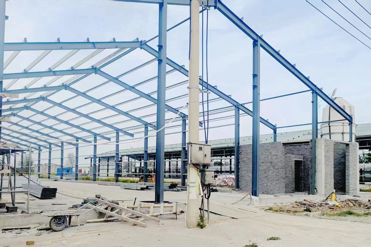 近日,走進東辛東米公司東方雞場施工車輛運輸材料工人忙碌作業四層籠養雞舍初現雛形。