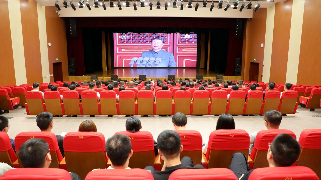 ? ? ? ?9月3日上午,東辛農(nóng)場(chǎng)組織全體場(chǎng)領(lǐng)導(dǎo)、農(nóng)場(chǎng)公司和蘇墾農(nóng)發(fā)東辛分公司機(jī)關(guān)部門全體人員、社區(qū)和經(jīng)營(yíng)單位領(lǐng)導(dǎo)班子成員、各農(nóng)業(yè)生產(chǎn)區(qū)負(fù)責(zé)人等170余人在文化活動(dòng)中心集中觀看了紀(jì)念中國(guó)人民抗日戰(zhàn)爭(zhēng)暨世界反法西斯戰(zhàn)爭(zhēng)勝利80周年大會(huì)直播盛況。