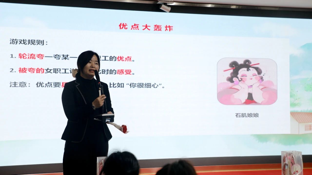 ? ? ? ?活動中,國家三級心理咨詢師劉海娟圍繞女性在職場與家庭中的心理壓力、情緒管理以及冥想放松等話題展開講解,通過輕松愉快的互動環節,女職工們學習了如何有效緩解壓力、提升心理韌性,并在日常生活中保持積極心態等相關知識?;顒舆€特別設置了有獎問答和手工制作艾草錘環節。在有獎問答中,女職工們踴躍參與,通過答題,不僅鞏固了所學知識,還贏得了精美禮品。手工制作艾草錘環節則讓大家親自動手實踐,制作出屬于自己的養生工具,活動現場不時傳出陣陣笑聲,大家在歡樂祥和的氛圍中度過了一個難忘的節日。
