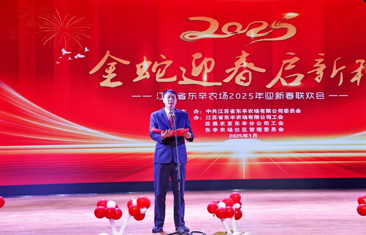 ? ? ? 東辛黨委書記、董事長趙志致辭,向大家送上節(jié)日問候和衷心祝福。過去的一年,東辛于變局中開新局,于危機(jī)中育新機(jī),農(nóng)業(yè)發(fā)展闊步前行,核心產(chǎn)業(yè)承壓奮進(jìn),肉雞養(yǎng)殖量質(zhì)齊升,電力及建筑安裝施工資質(zhì)提檔升級,種養(yǎng)結(jié)合生態(tài)循環(huán)農(nóng)業(yè)成效顯著,重點(diǎn)項(xiàng)目推進(jìn)有力有序,民生實(shí)事扎實(shí)推進(jìn),黨建工作亮點(diǎn)紛呈,各項(xiàng)事業(yè)取得了長足的發(fā)展。2025年,將繼續(xù)揚(yáng)帆起航,圍繞集團(tuán)公司“三大建設(shè)”“三大工程”戰(zhàn)略部署,錨定建設(shè)現(xiàn)代一流農(nóng)業(yè)企業(yè)目標(biāo),堅(jiān)定信心決心,保持發(fā)展定力,深化改革創(chuàng)新,聚力轉(zhuǎn)型升級,全力以赴打好產(chǎn)業(yè)攻堅(jiān)戰(zhàn)、項(xiàng)目突破戰(zhàn),加快構(gòu)建現(xiàn)代農(nóng)業(yè)大基地、大企業(yè)、大產(chǎn)業(yè)格局,以新的發(fā)展實(shí)績在江蘇農(nóng)墾現(xiàn)代農(nóng)業(yè)航母建設(shè)征程中展現(xiàn)東辛擔(dān)當(dāng)、貢獻(xiàn)東辛力量!