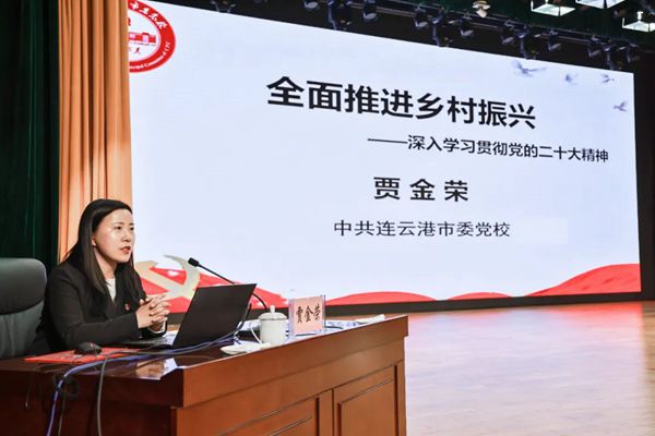 ? 中共連云港市委黨校經濟學教研室副教授賈金榮以《全面推進鄉村振興》為題作開班第一講。她從鄉村振興戰略的提出、二十大及2023年一號文件精神解讀、全面推進鄉村振興的路徑選擇思考等三個方面作了一堂精彩生動的鄉村振興專題講座。根據主題教育工作安排,本次讀書班為期一周,采取集中讀書、專題研討、座談交流和現場調研相結合等方式,通過黨員干部讀原著、學原文、悟原理,不斷加深對黨的創新理論的理解和把握,切實發揮讀書班領學帶學促學作用,推動習近平新時代中國特色社會主義思想真正入腦、入心、入行。