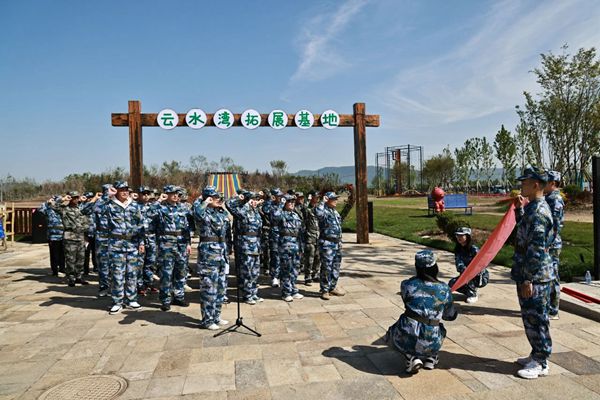 ? 全體團(tuán)員在拓展基地門前列隊(duì)集合,重溫入團(tuán)誓詞,感悟初心。“稍息,立正!”在教官的指導(dǎo)下進(jìn)行軍事化訓(xùn)練。高昂響亮的口號(hào),颯爽挺拔的軍姿,通過訓(xùn)練不斷磨煉大家的意志力。在拓展訓(xùn)練場地,大家自由體驗(yàn)彩虹滑道、平衡橋等互動(dòng)體驗(yàn)項(xiàng)目。活動(dòng)現(xiàn)場氣氛熱烈,歡笑聲、加油聲、鼓掌聲此起彼伏,展現(xiàn)出東辛青年良好的精神風(fēng)貌。